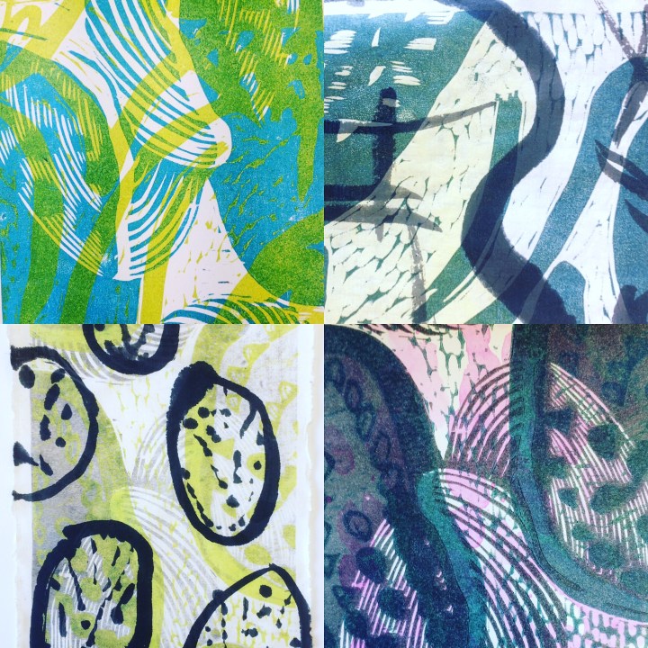 We also etched Lino using wax with caustic soda which gave a fantastic finish and opened the door for many exciting directions in future explorations with etching……watch this space!