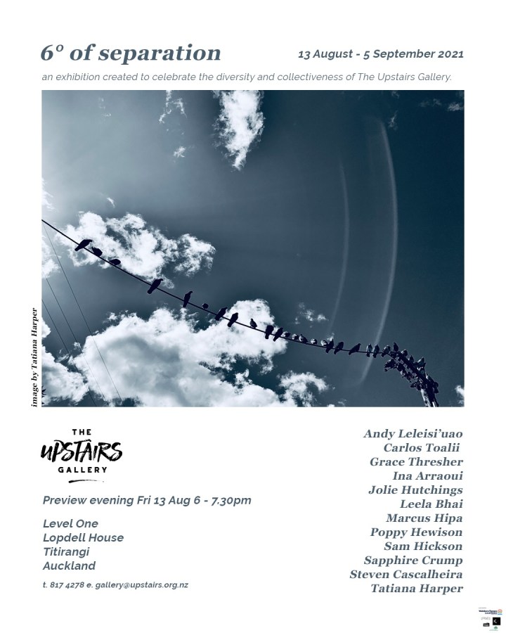 I had the pleasure of being invited to show alongside a group of artists working in different media (including my sister and mentor Leela Bhai!). Curated by Tatiana Harper and Carlos Toalii, the idea behind the show was to celebrate the diversity and consecutiveness of Upstairs Gallery Titirangi, hence the title – 6 Degrees of Separation.