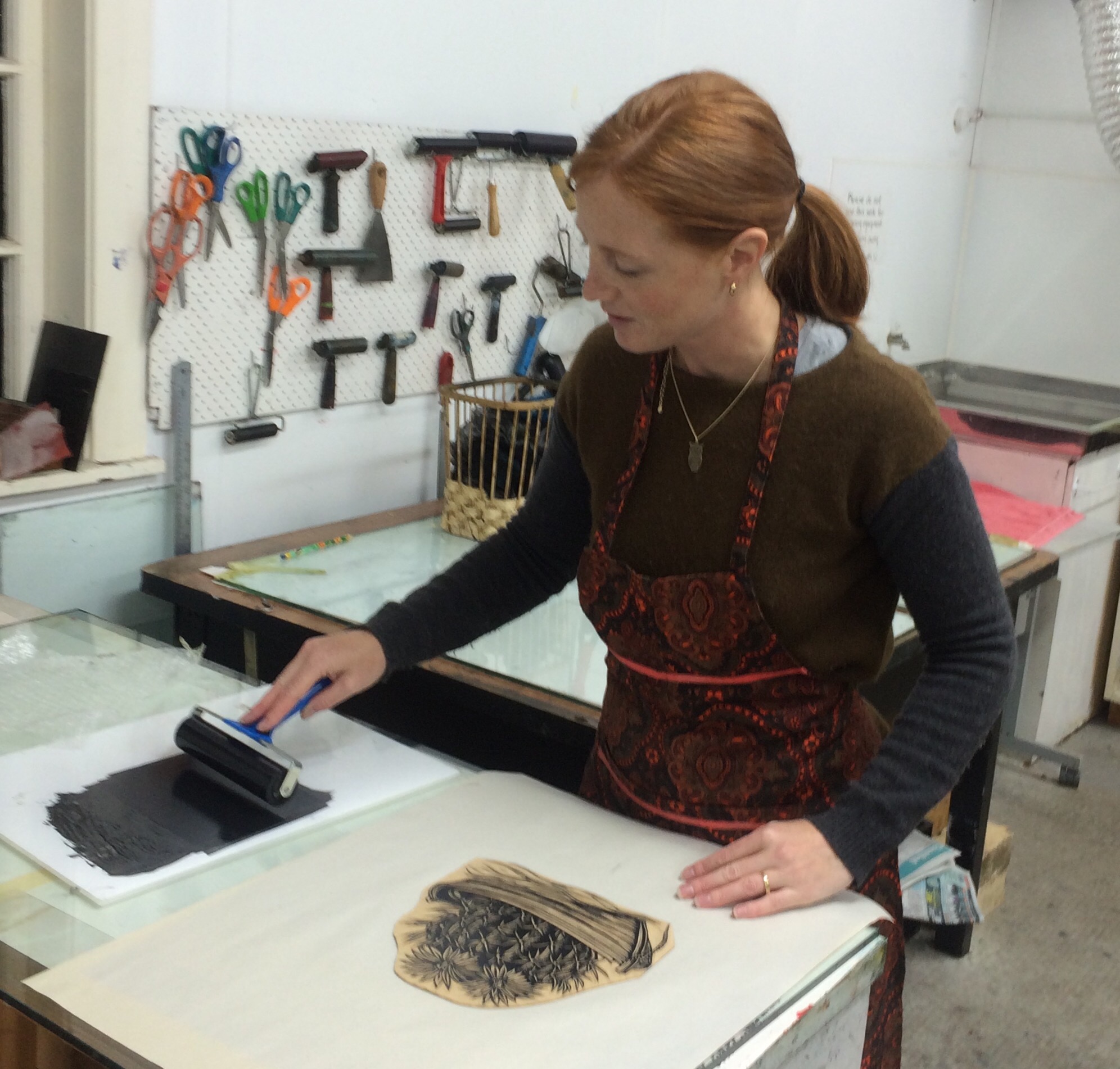 Her art education began in the small rural community of Fern Flat, where she was surrounded by a vibrant community of artists. Her mother’s studio was always a creative powerhouse with colourful painted silks, embroidery and sewing. As a teenager, Ina gravitated towards woodblock as a medium to explore patterns, lines and texture, being drawn to the meditative effects of carving the block, as well as the active and technical engagement in transferring the image.