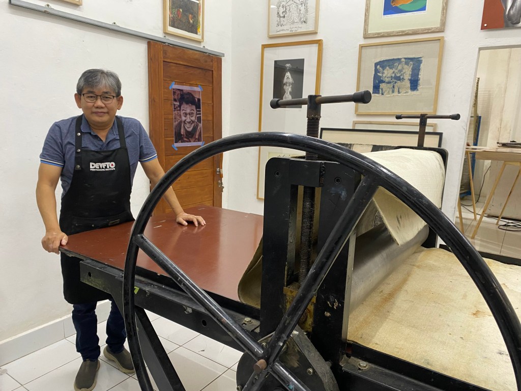 Sadly, Devy was forced to close RedPoint Printmaking Studio and Gallery in 2000 due to a lack of finance and went on to teach printmaking at universities in Bandung and Jakarta, until he retired in 2017. He then got the opportunity to go to Bali where he co-founded Black Hand Gang and in 2021 decided to independently establish his own studio, Devfto Printmaking Institute.