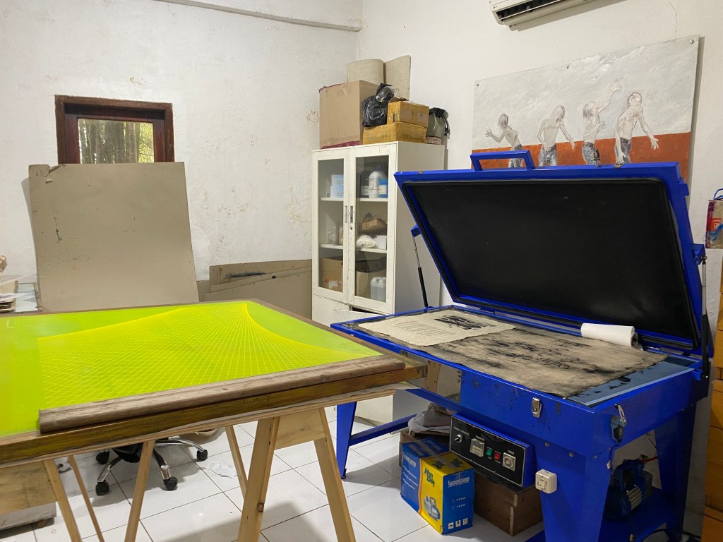 This is not the first studio Devy has run. RedPoint Printmaking Studio and Gallery was the country’s first printmaking studio in Bandung, West Java in 1993. At that time printmaking was not yet popular in Indonesia and the studio was a way to promote the field and give students studio access after finishing their studies. Many students were reluctant to continue studying printmaking due to the cost of materials, which were hard to come by then.