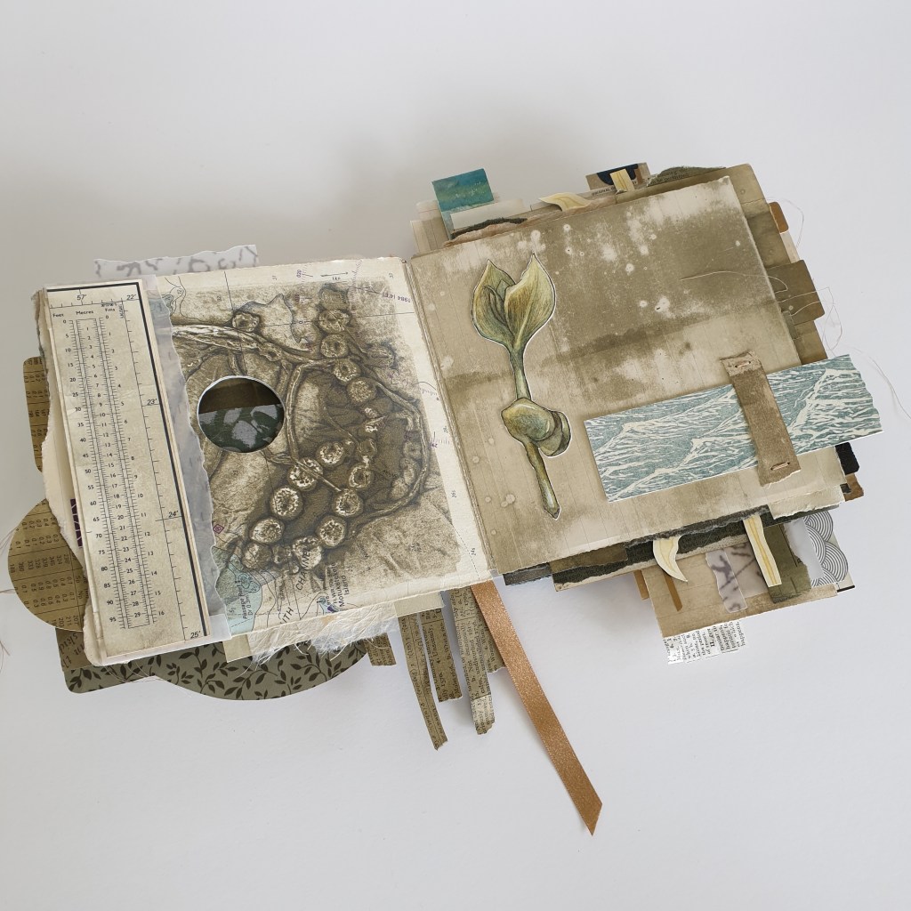 The idea for the exhibition was inspired by Out of the Cupboard, a group show of artist books at the Angela Morton Room in 2020, which Hartill co-curated with Toni Mosley to shine a light on this exciting area of printmaking. Hartill started exploring artist books in 2016 after attending workshop with Australian master printer Dianne Fogwell. The transition from creating two-dimensional to three-dimensional work came naturally to Hartill whose background involved a degree in art and design that included furniture design and model making. She enjoys working with her hands and is always experimenting with new things; leatherwork, knitting, crochet. Problem solving has always been part of her creative process. As a child she remembers designing and building a dolls house from scratch, including creating all the furniture and fittings for it.
