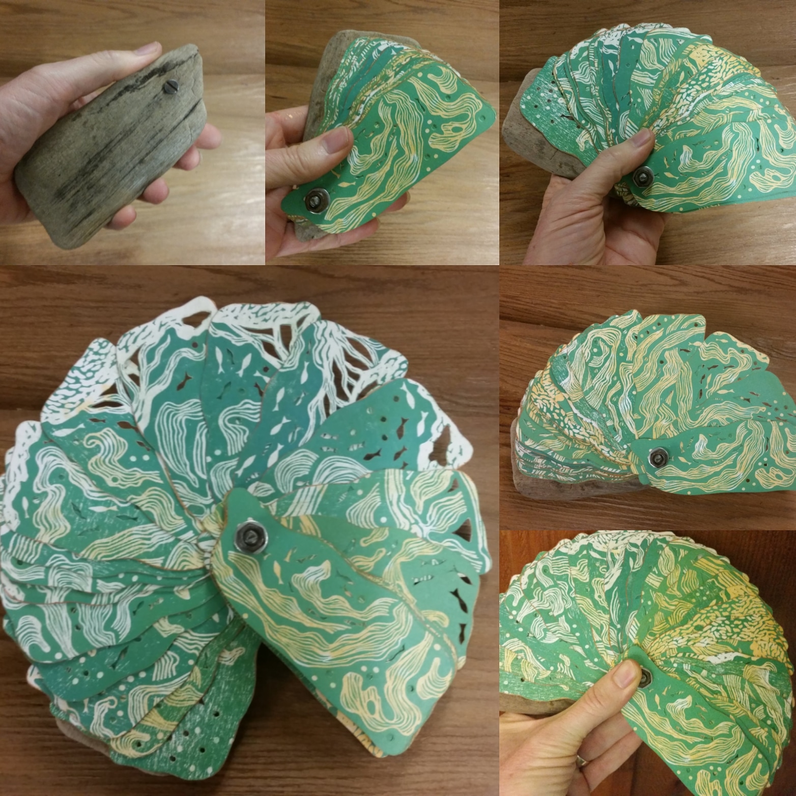 When she left teaching to focus on her arts practice, her first goal was to create community by meeting other printmakers. She enrolled in a beginners’ printmaking course at Corban Estate Arts Centre and from that was invited to join the local Waitakere Printers Ink group where she had the opportunity to exhibit in group shows. She then started attending events run by the Print Council Aotearoa NZ (PCANZ), which she joined and subsequently became their Auckland Regional Rep. This role provided an invaluable experience not only for developing her knowledge of printmaking but for meeting inspiring, likeminded printmakers who have become close friends she can share ideas with. She discovered the importance of community to her creative practice.