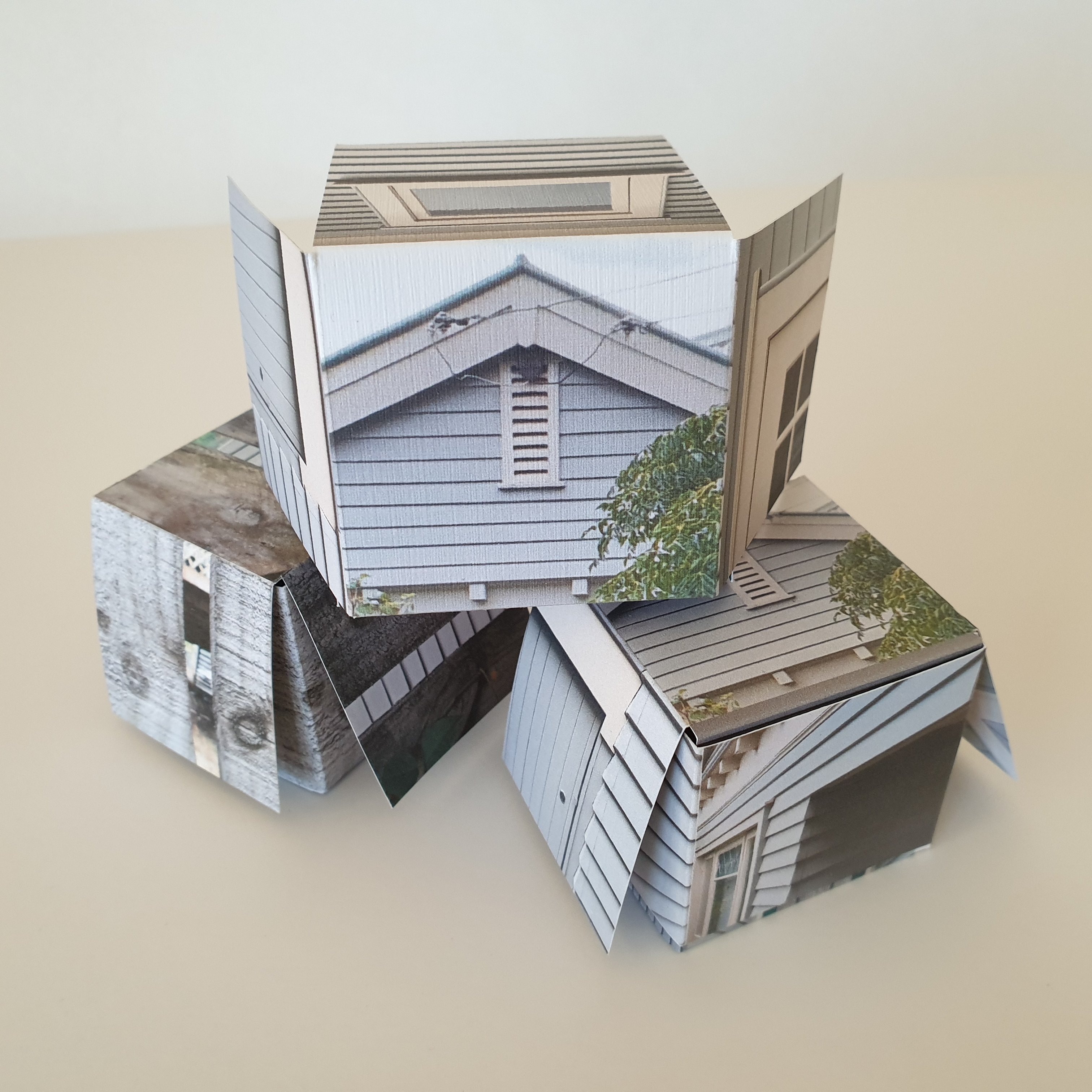 The idea for the exhibition was inspired by Out of the Cupboard, a group show of artist books at the Angela Morton Room in 2020, which Hartill co-curated with Toni Mosley to shine a light on this exciting area of printmaking. Hartill started exploring artist books in 2016 after attending workshop with Australian master printer Dianne Fogwell. The transition from creating two-dimensional to three-dimensional work came naturally to Hartill whose background involved a degree in art and design that included furniture design and model making. She enjoys working with her hands and is always experimenting with new things; leatherwork, knitting, crochet. Problem solving has always been part of her creative process. As a child she remembers designing and building a dolls house from scratch, including creating all the furniture and fittings for it.