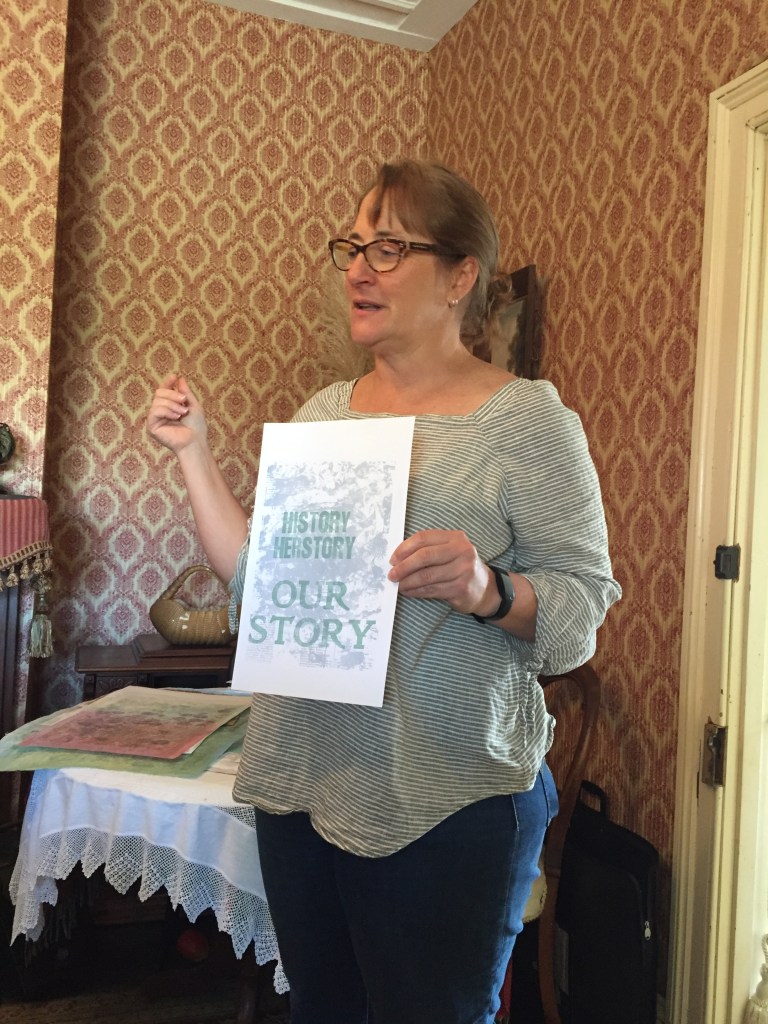 Printed on the Village’s antique, treadle operated letterpress machine are the words History, Herstory, Our Story. This exhibition challenges the viewer to rethink historical narratives from different perspectives, particularly through the female lens.