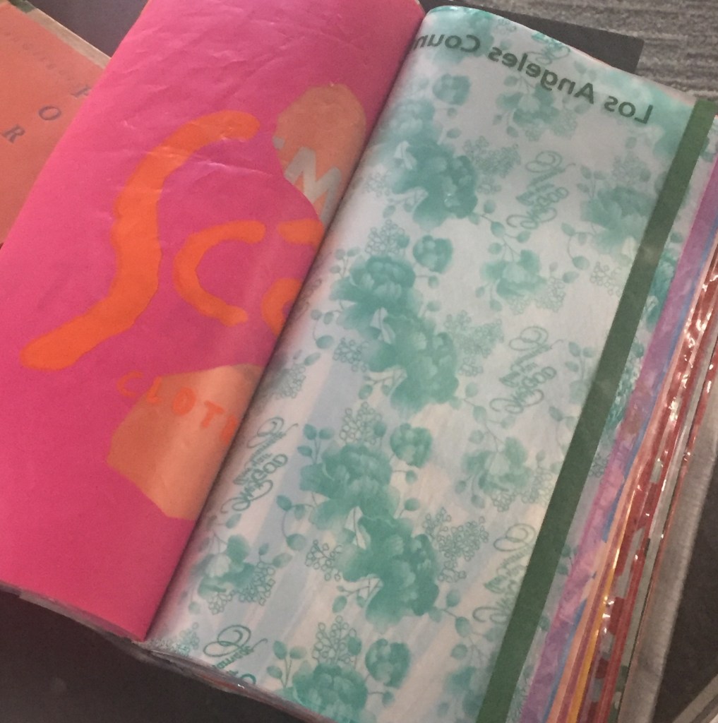 The title of the exhibition alludes to the fact that the artist’s book is a genre that the public knows little about and has limited exposure to due to the relatively small audience that exists and low demand in the art market. For Mosley, who exhibited her first artist’s book as part of her MFA several years ago, continues to incorporate them into her art practice as it’s a genre that she feels allows her to be more playful and add an extra bit of quirkiness to her work that often addresses social issues with light-hearted humour. Her book Assortment (2013), with accordion folded pages stretching a whopping 40 metres, depicts several fully coloured figures on the opening page, which become less colourful as the book progresses, commenting on the threat to cultural diversity posed by Auckland’s restructuring to a ‘super city’ resulting in the amalgamation and loss of colour in our multicultural landscape. Another book contemplating our changing socio-cultural landscape is Elizabeth Steiner’s Plastic Bag Book which pages are made of a selection of plastic bags Steiner has collected from shopping excursions from Bakers Delight to Pumpkin Patch to the de Young Fine Arts Museum. The pages act as a kind of diary of consumerism, exposing and tracking her movements and preferences, leaving the viewer wondering what she bought and if these places still use plastic bags, which are now banned and becoming a relic of the past.