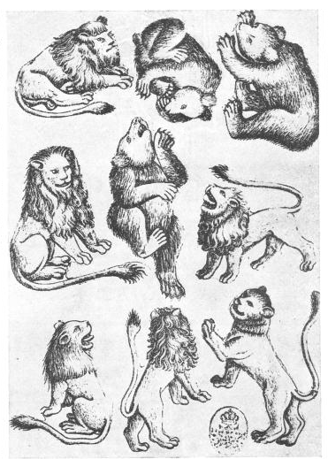 Left to right: 9 of Beasts (c.1430-50) by Master of the Playing Cards. Copper engraving, Elefant (c.1485) by Martin Schongauer. Engraving. Adam and Eve (1504) by Albrecht Dürer. Engraving 250mm x 200mm. Source for all: Wikimedia Commons