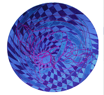 Another textural innovation developed among Hayter’s students was the use of soft ground etching to create layered modernist collages made primarily from different fibres and textiles. The effect is achieved by covering a copperplate with acid-resistant ground that is softer than an etching ground so that anything that comes in contact with it, such as a piece of lace, leaves a mark that is then incised by the acid. Soft ground was often used as a starting point after which other intaglio techniques such as engraving where added creating overlapping textures, shapes and lines. American artist Sue Fuller (1914 – 2006), who studied with Hayter in 1943, expanded the soft ground method to make intricate abstract images using thread and string, which she later used to create her signature three-dimensional string compositions.