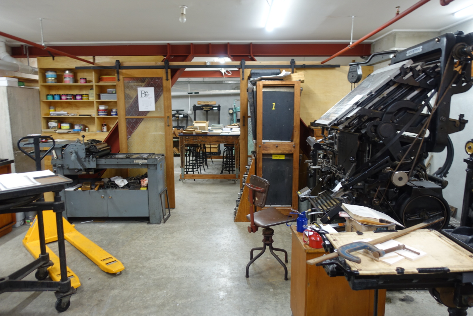 The final room is The Bindery, where everything was acquired from the Parliamentary bindery in the General Assembly Library, including an impressive set of bookbinding tools, a book press, foiling press, card cutter and guillotine. The last bookbinding course offered was completely sold out and more are planned for the coming year.